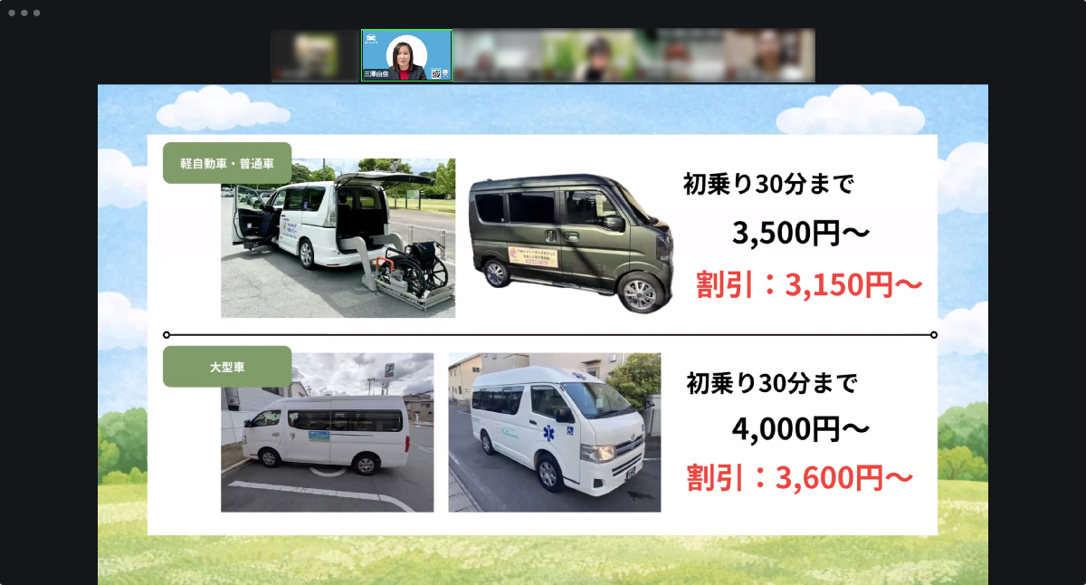 先日、タビサポを運営するAMUSE株式会社にて、介護タクシー・福祉タクシーの配車サービス「のれるんです」を運営する合同会社ReeveSupportの代表 三澤由佳さんを講師にお迎えし、現場で困らない選び方・頼み方・連携のコツについての勉強会を開催いたしました