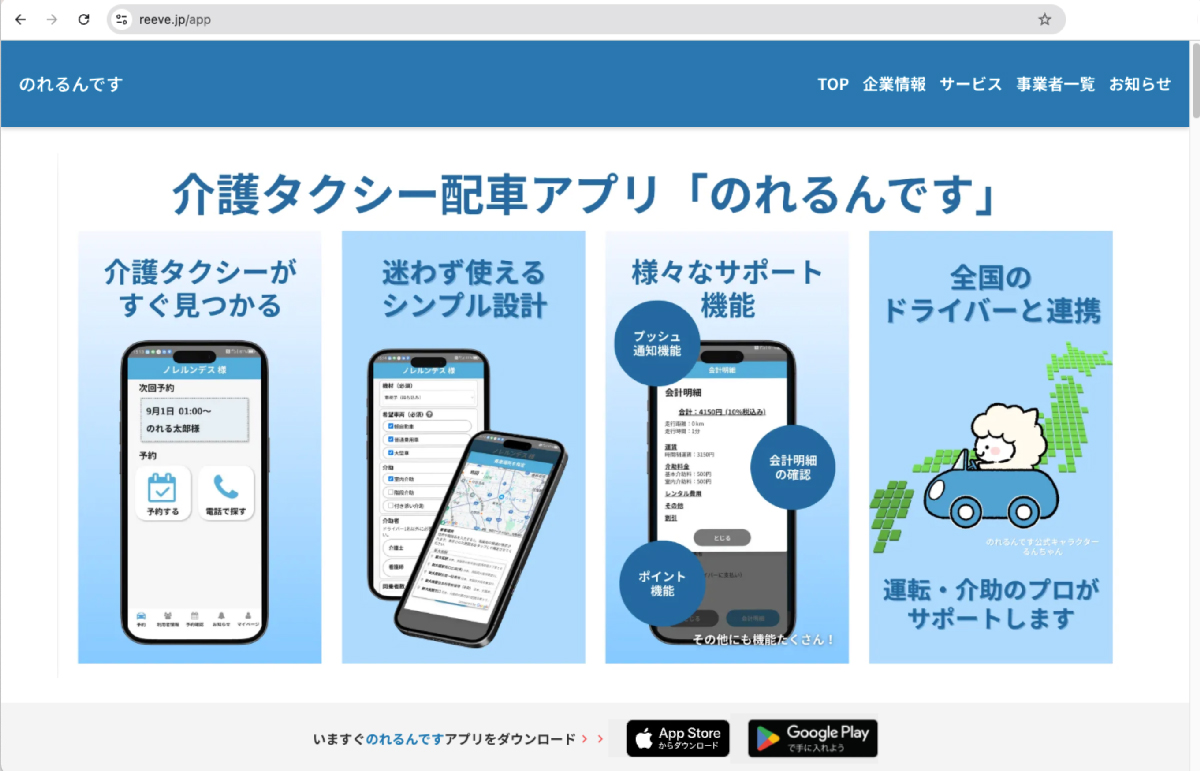 Instagram(【公式】介護タクシー配車アプリ「のれるんです」):https://www.instagram.com/norerundesu